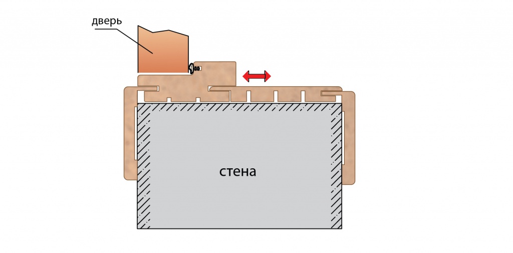 - Конструкция телескопического погонажа складывается из 3х элементов, необходимых для оформления дверного проема. Дверной короб снабжен специальными пазами для монтажа доборной панели или наличника, доборных панелей с пазами и наличника.